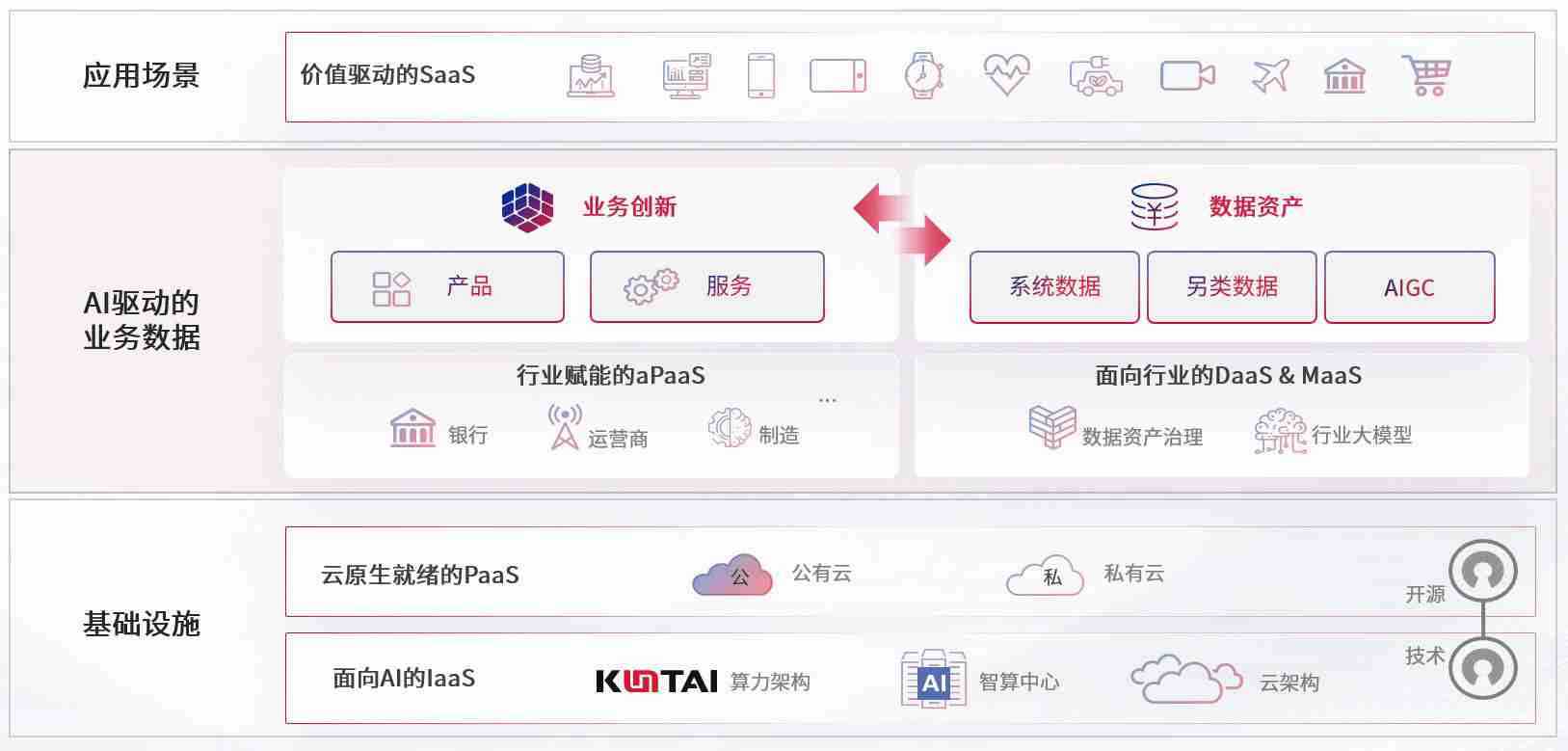 数字时代,,,,围绕企业数字化转型的关键要素,,Z6尊龙数码开创性的提出数云融合战略和技术体系框架,,着力在云原生、、、、数字原生、、、AI原生和信创产业上架构产品和服务能力,,,,为处在不同数字化转型阶段的快消零售、、汽车、、金融、、医疗、、政企、、教育、、、运营商等行业客户提供泛在的敏捷IT能力和融合的数据驱动能力,,,,构建跨界融合创新的数字业务场景和新业务模式,,助力企业级客户建立面向未来的核心能力和竞争优势,,全面推动社会的数字化、、、、智能化转型升级。。